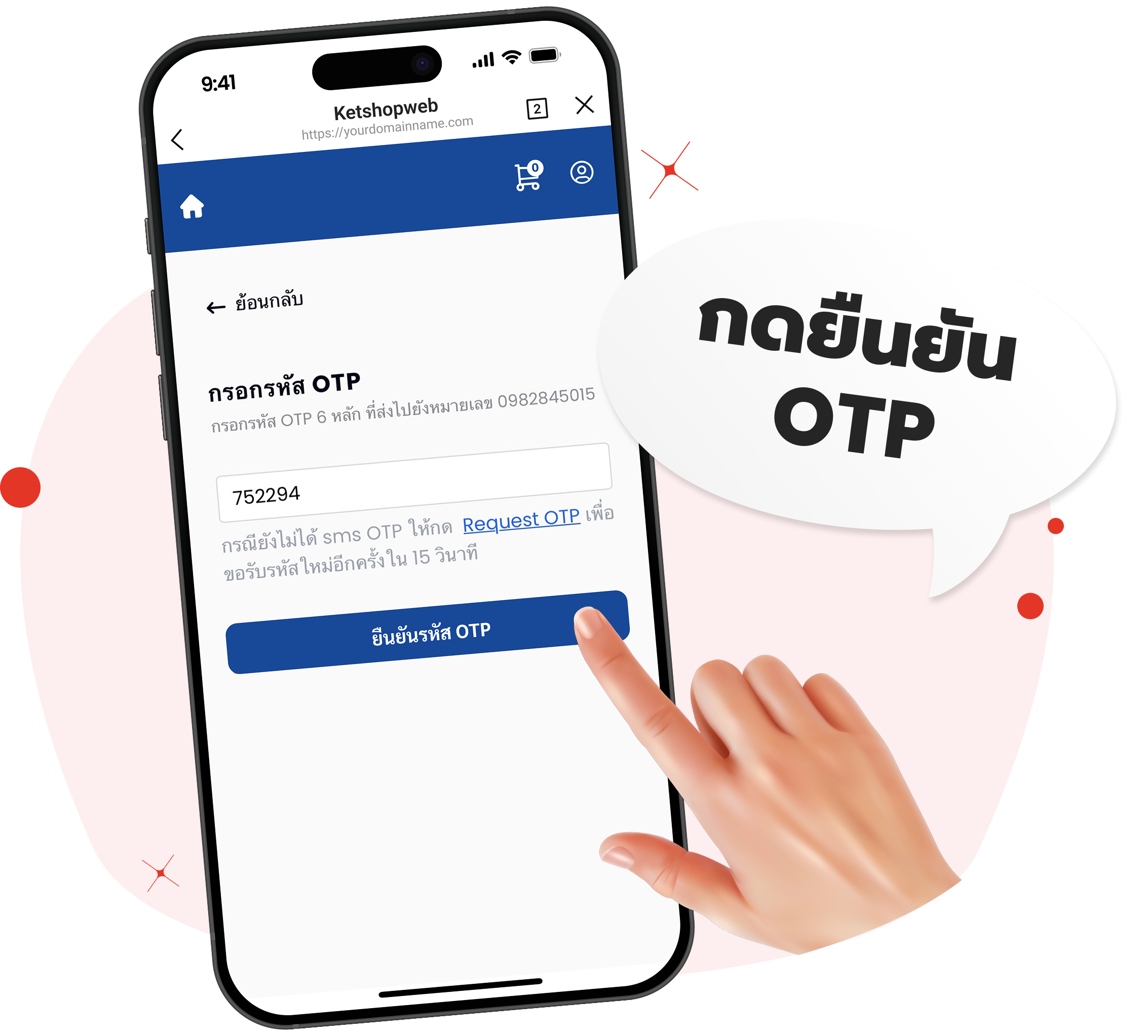 กรอกเบอร์โทร และยืนยันตัวตนเพื่อสมัครสมาชิก