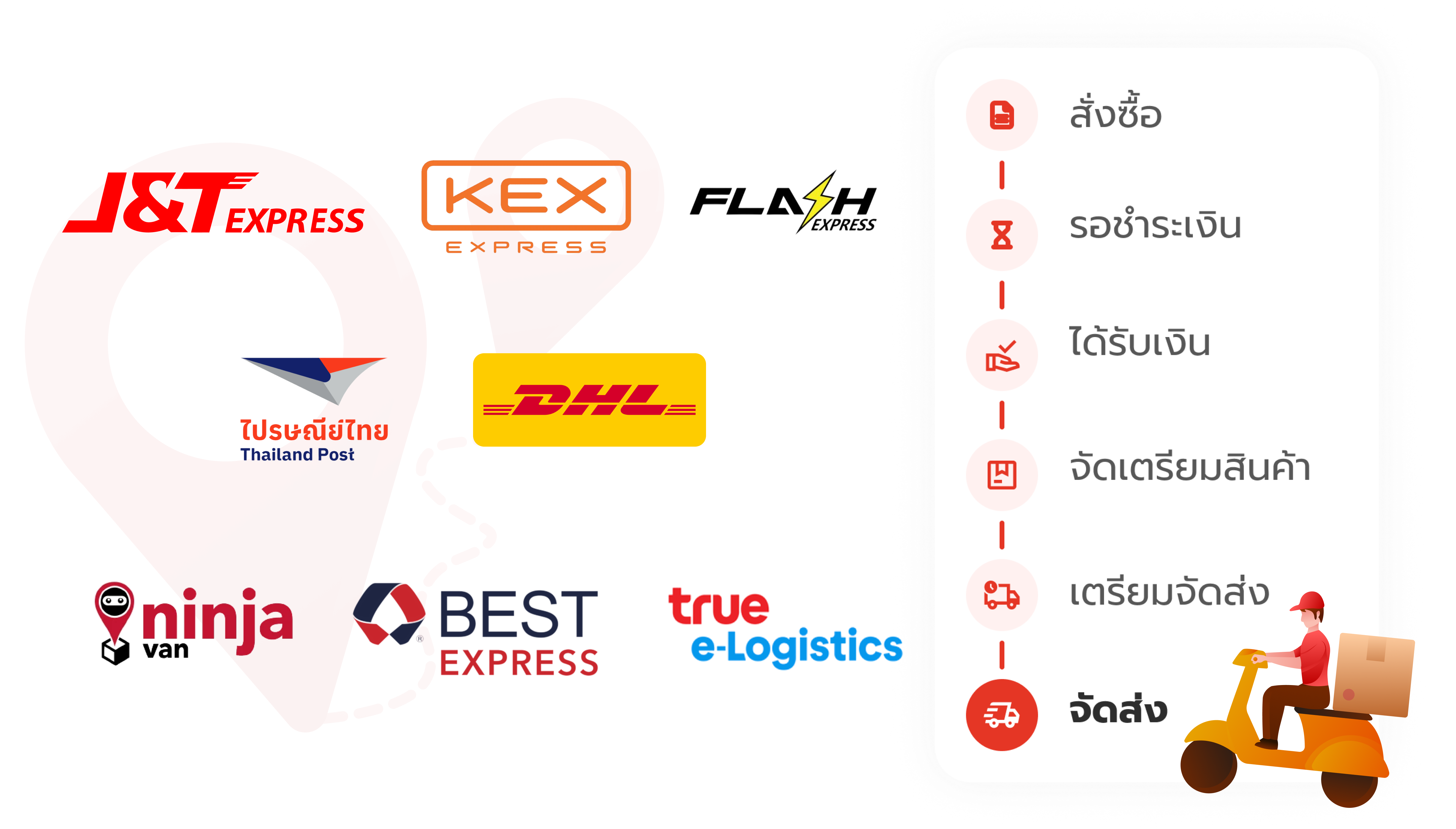 เชื่อมตรงกับขนส่งหลักและ Shippop เลือกขนส่งที่เหมาะสมอัตโนมัติ รองรับ COD พร้อมติดตามพัสดุแบบ Real-time